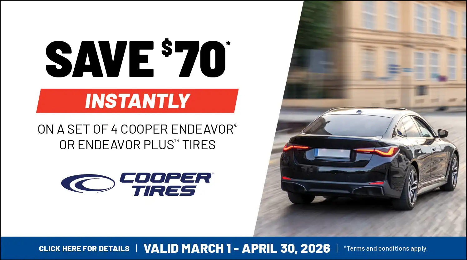 We have a 30-day price guarantee on our tires. If you find a lower advertised price at a local competitor, we’ll refund the difference.