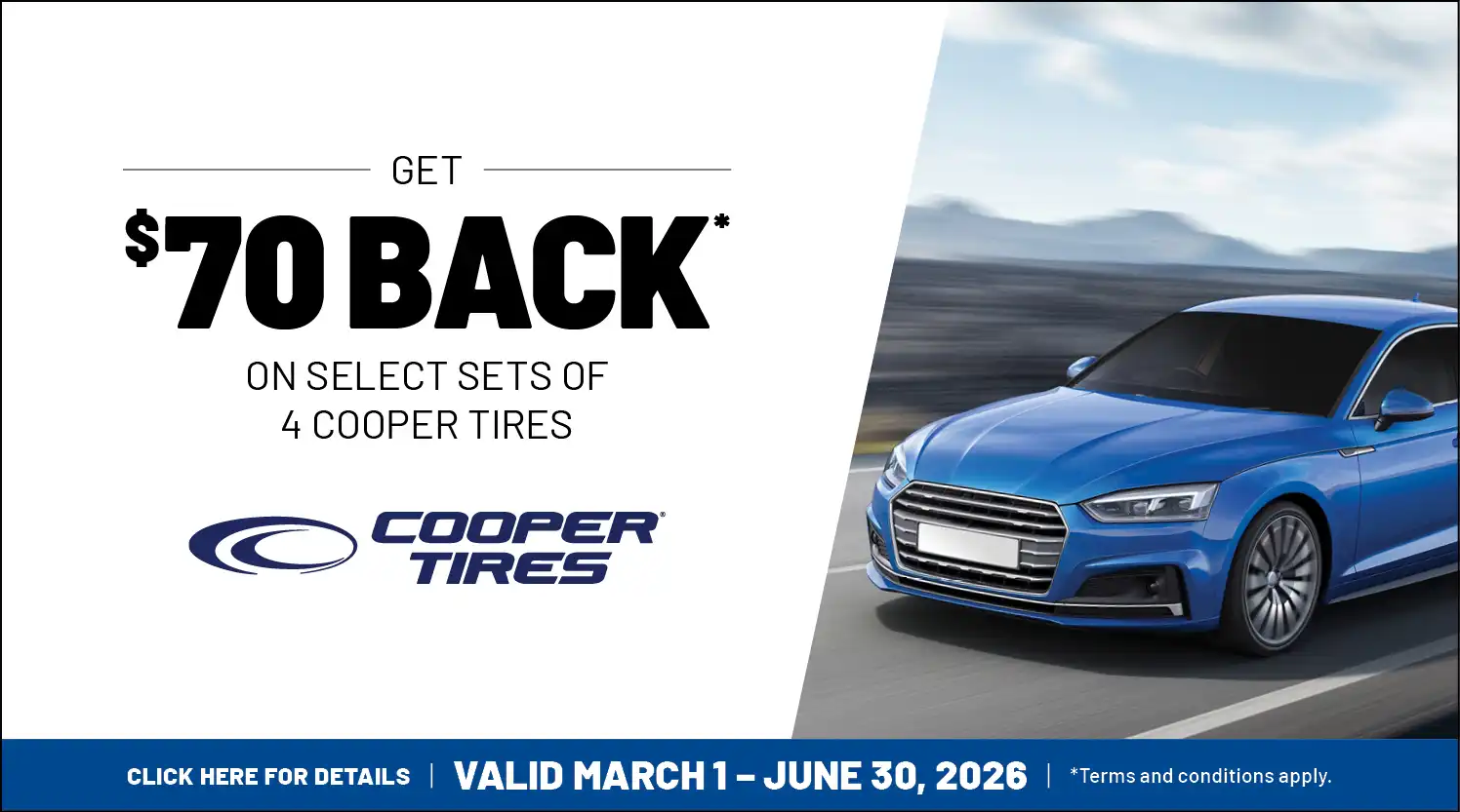 We carry tires from the Cooper Tire & Rubber Company, an American company with a more than one-hundred-year heritage of quality. Founded in 1914 and headquartered in Findlay, Ohio, Cooper® is the fifth largest tire manufacturer in North America and the 13th largest globally. Cooper focuses on the passenger car and light truck replacement tire market, but increasingly manufacturers are specifying Cooper tires as original equipment. Cooper tires are designed and built with great care to provide thousands of miles of excellent service.