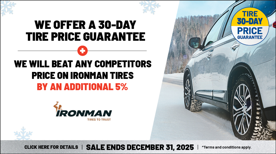 We have a 30-day price guarantee on our tires. If you find a lower advertised price at a local competitor, we’ll refund the difference.